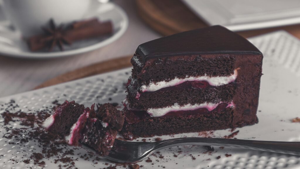 So, I ate half of my cake. But wait — before that, I had a whole cake that was cut into 2 big pieces.
